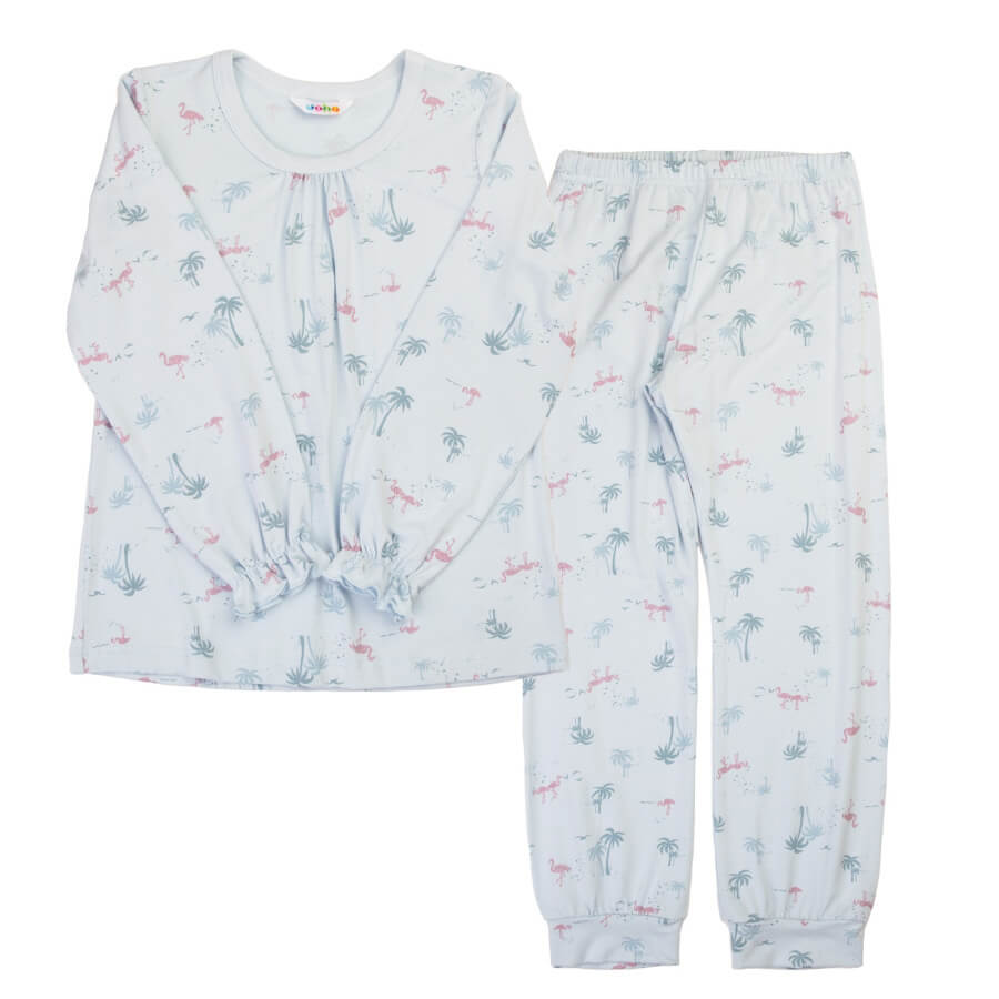 Joha pyjamas med flamingo-print i økologisk bambus. Bluse med lange ærmer. Pufærme effekt ved skuldrene, samt elastik ved håndled som sød detalje. Bukser med god elastik i taljen. Hele sættet er i en dejlig blød, elastisk og økologisk bambuskvalitet som er dejlig behagelig at have på. Oeko-tex 100 mærket. Hos Scandinavianlux går vi ikke ned på kvaliteten, og sikrer samtidig gode priser på vores produkter. Bambus tøj til børn er noget af det lækreste tøj, som danske Joha producerer. Bambus er fantastisk til at køle dit barn ned, når det bliver for varmt, og føles samtidigt dejligt blødt mod huden.