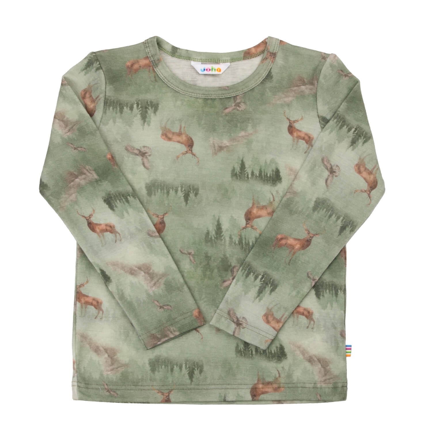 Joha uld langærmet t-shirt med skovprint. En super blød og let uldkvalitet med god strækevne som er dejlig behagelig at have på. Dette er den skønneste langærmet t-shirt man kan tænke sig. Hos Scandinavianlux har vi et stort udvalg af uldtøj til børn, i den blødeste kvalitet.