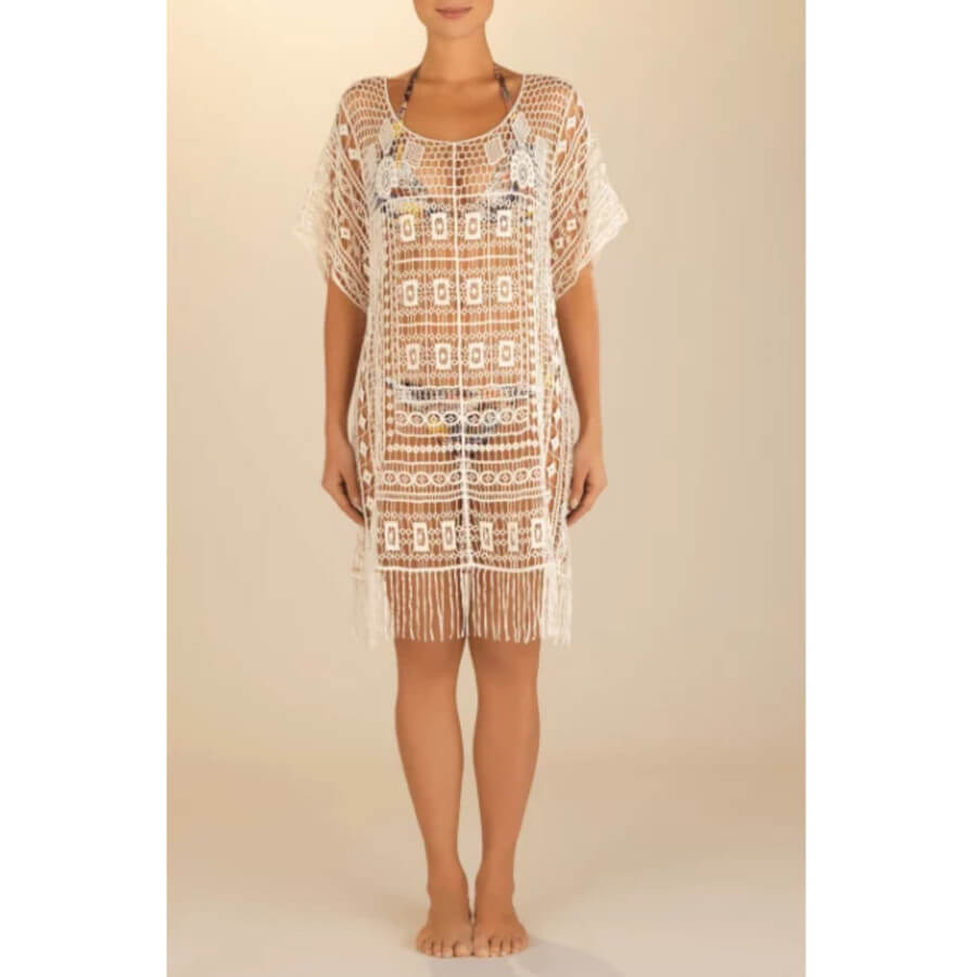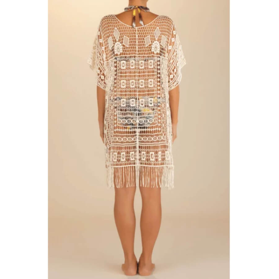 Hestina – Løs ecru guipure-blonde tunika af 100% bomuld.