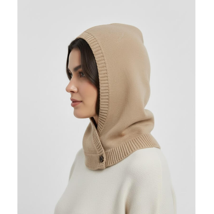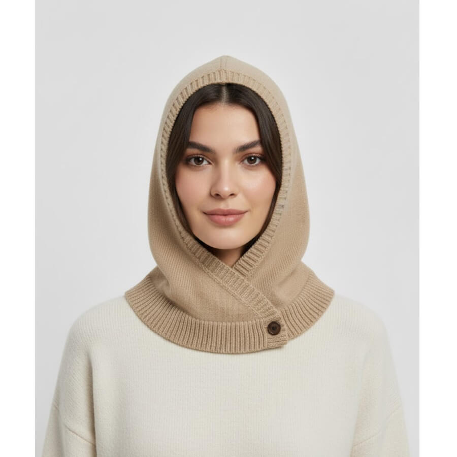 Dejlig varm og blød cashmere-uld balaclava, i lys beige. Vaskes nemt i maskinen på 30℃ uldprogram, med en skånsom uldsæbe.