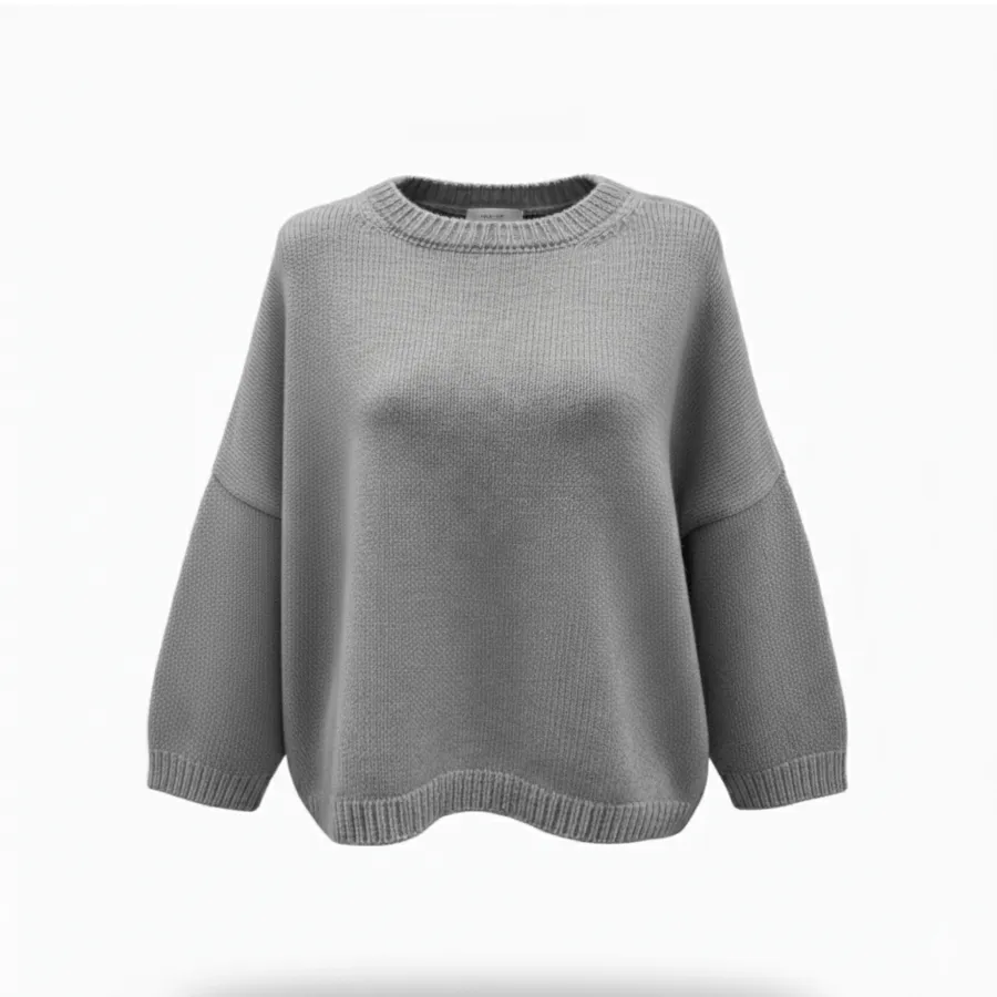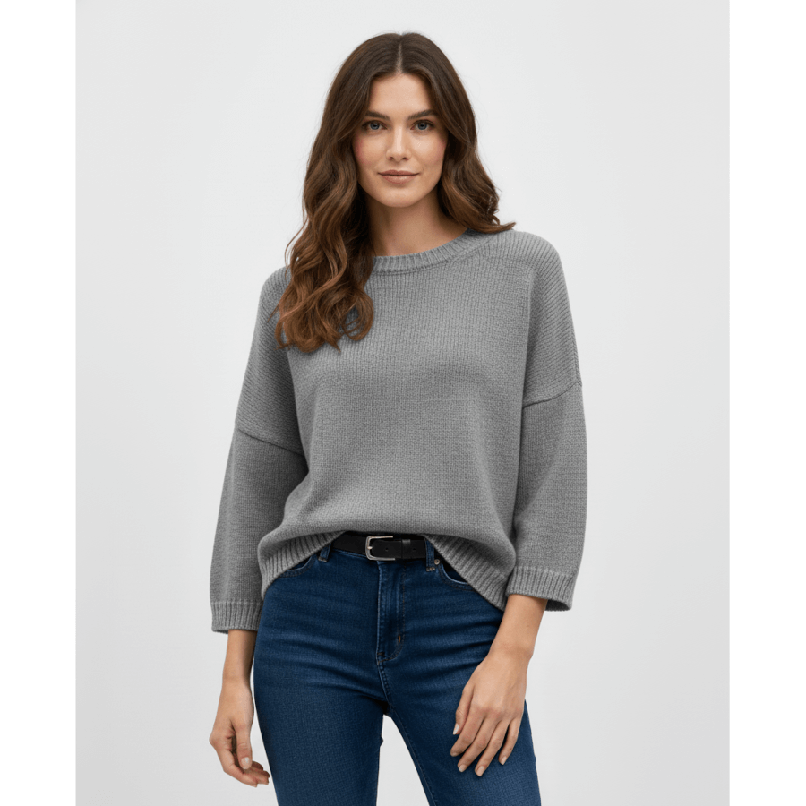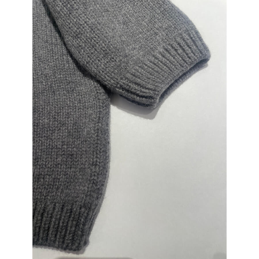 Dejlig varm og blød cashmere-uld sweater, i grå. Vaskes nemt i maskinen på 30℃ uldprogram, med en skånsom uldsæbe.