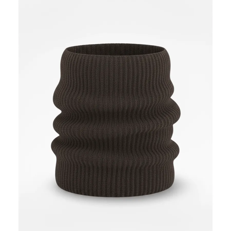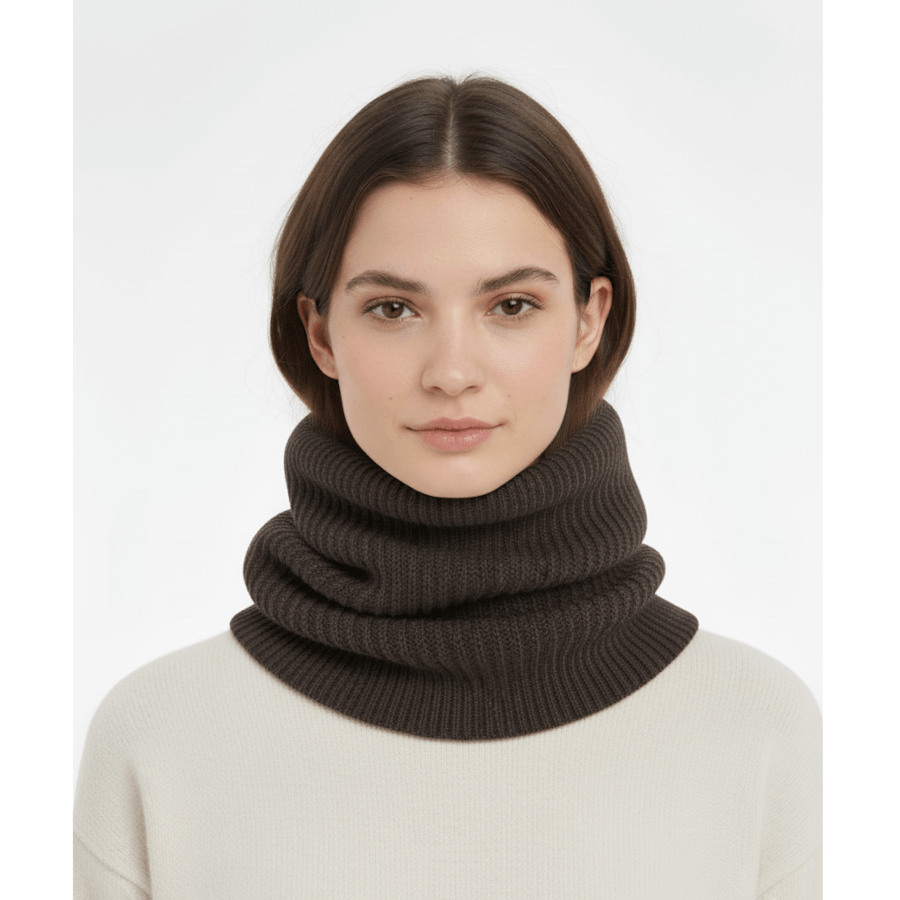 Dejlig varm og blød uld rib halsedisse, i mørkebrun. Vaskes nemt i maskinen på 30℃ uldprogram, med en skånsom uldsæbe.