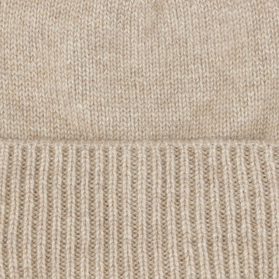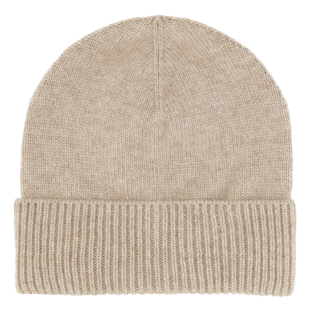 Cashmere hue med rib kant i lys beige