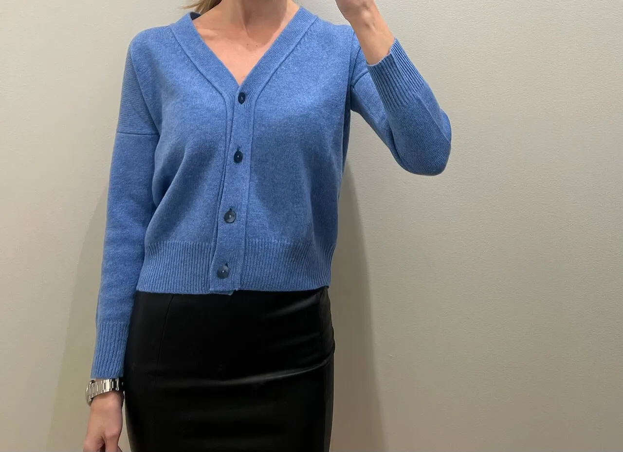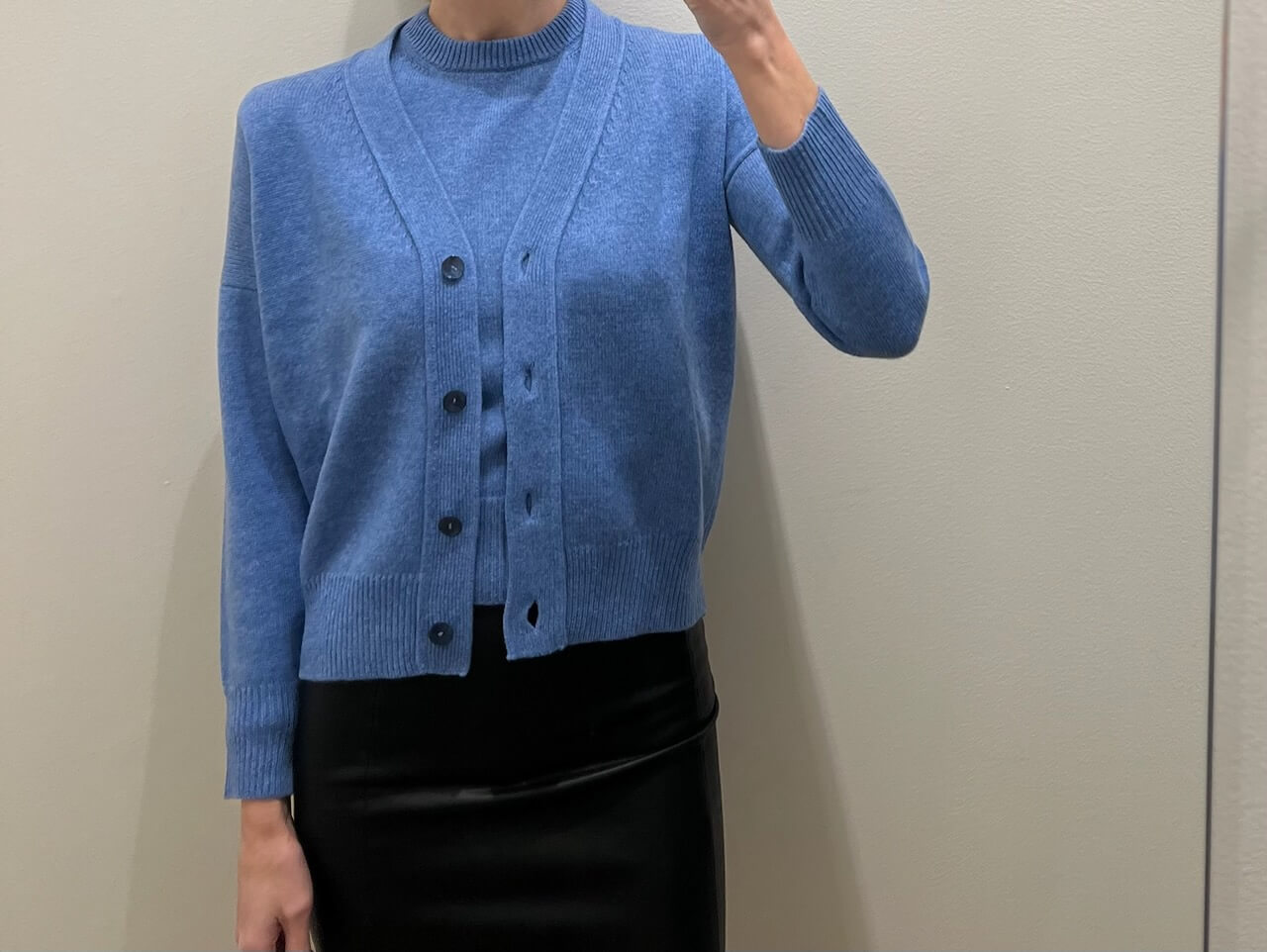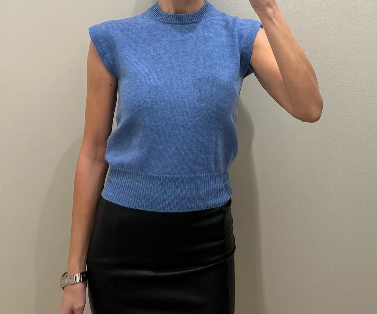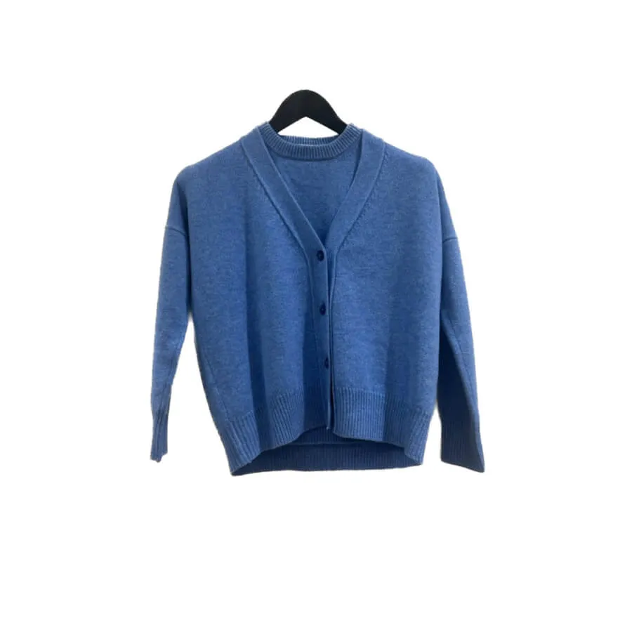 Scandinavianlux cashmere top og cardigan sæt i blå, i 100% cashmere.