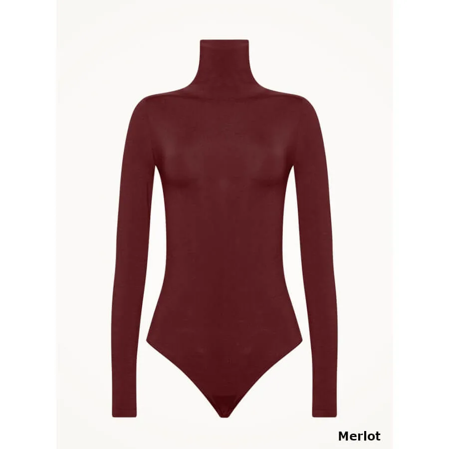 Colorado rullekrave bodysuit: Sømløs langærmede bodysuit, der er lavet af vores ikoniske uigennemsigtige naturlige cirkulære strikmateriale. Som altid kombinerer den en delikat ydre glans med en blød bomuldsunderside, men det nye er, at det nu er bæredygtigt farvet. Den tætsiddende rullekrave er strikket ind og skaber en slank, uafbrudt æstetik, der kombineres med det sofistikerede brasilianske snit for et look, der oser af femininitet. • Bomuldskive • Knaplukning.