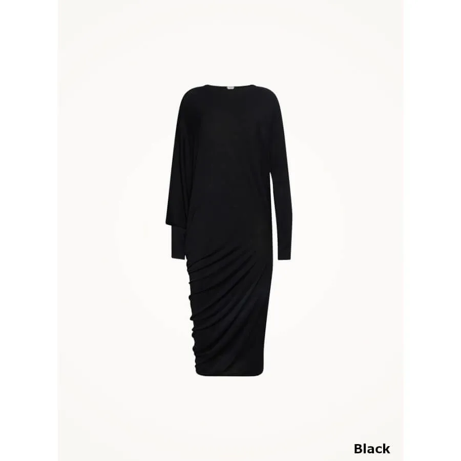 Wolford CREPE JERSEY DRESS. Justerbar draperet crepe kjole. Den flydende kvalitet i denne langærmede kjole kan draperes over kroppen på forskellige måder for at skabe en personlig pasform. En rund halsudskæring og slanke ærmer tilføjer struktur til den bløde silhuet.