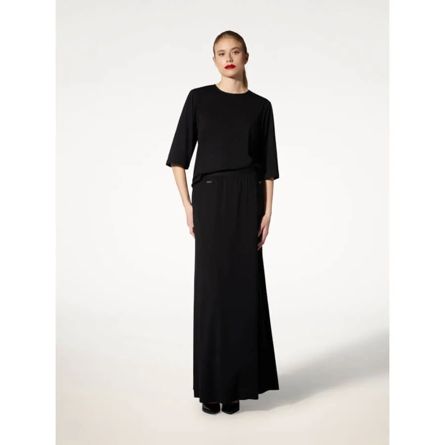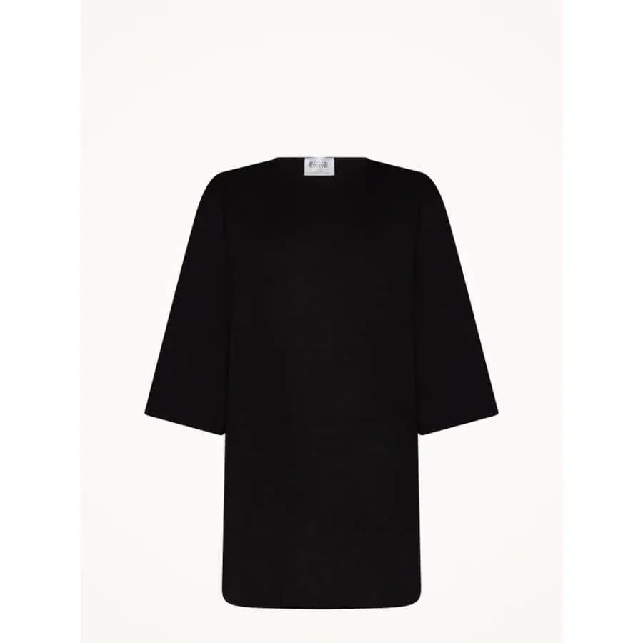 Wolford LEISURE TOP SHORT SLEEVES. Den boxy T-shirt er fremstillet af Wolfords fuldt bæredygtige Aurora-stof og har en flydende, draperet pasform. T-shirten er længere bagpå og har en asymmetrisk crewneck-udskæring med rå kanter.
