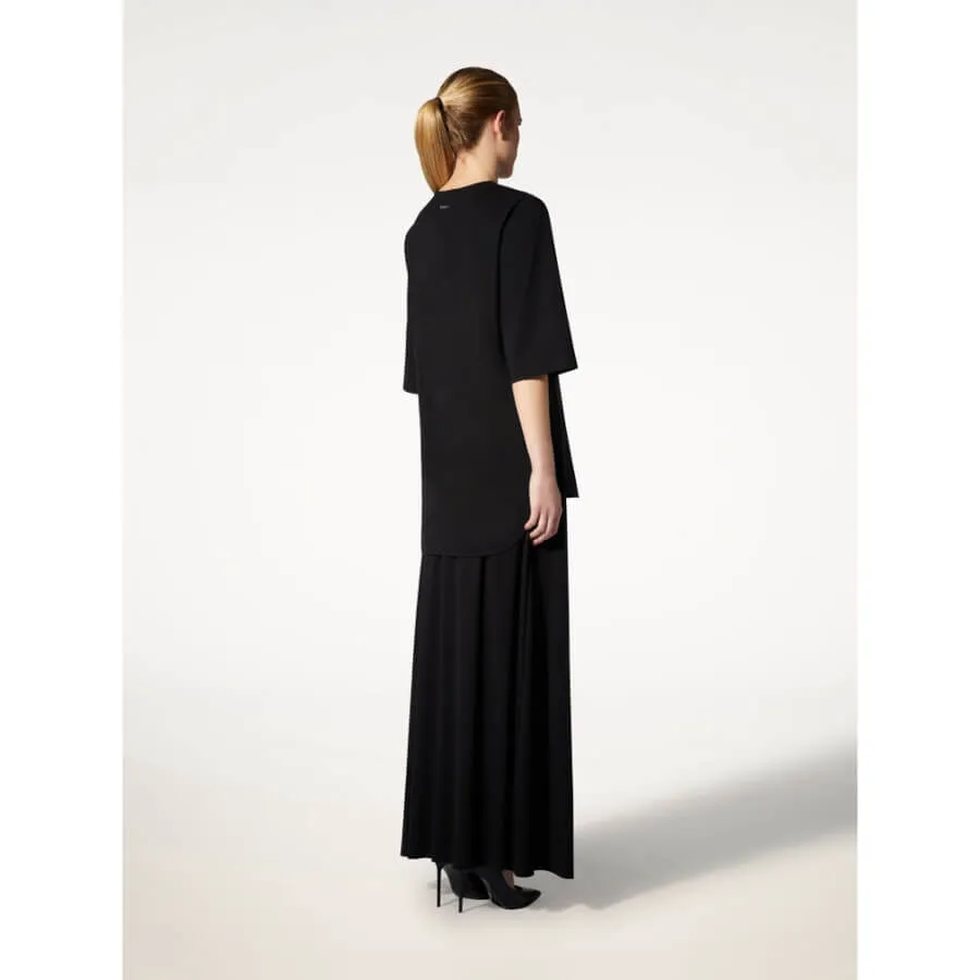 Mat, rent skåret materiale / Behageligt, strækbart materiale / Korte ærmer, crewneck-stil / Asymmetriske kanter, længere bagpå / Logo hotfix-applikation, håndpåført / Rå sømme / Nyt logo: Det nye monogram er inspireret af linjerne fra vores ikoniske kollektioner og den naturlige form af den kvindelige krop.