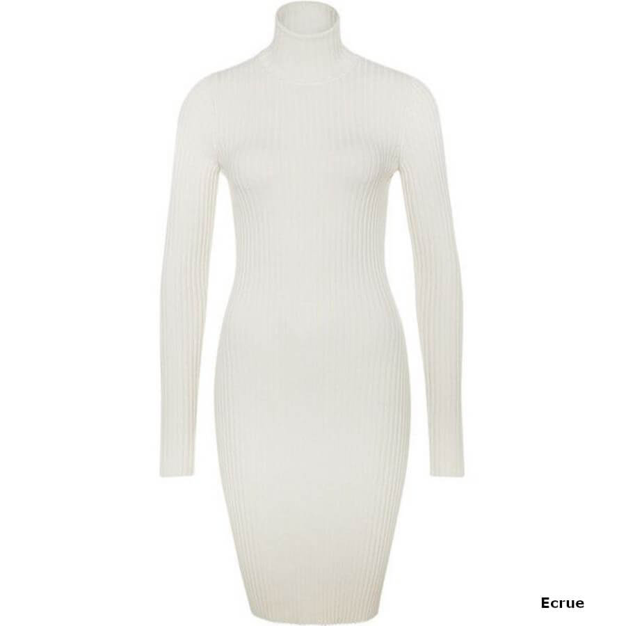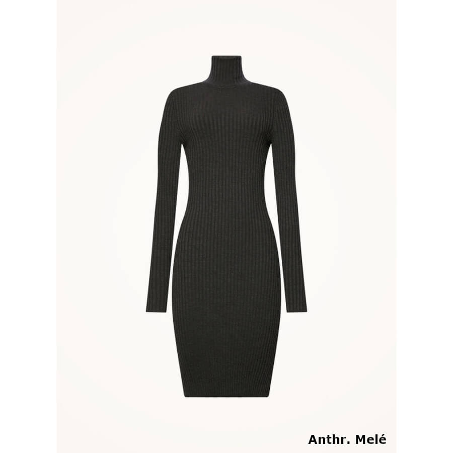 En luksuriøs essentiel kjole til utallige lejligheder. En stylingklassiker. Fin blød merinould i et klassisk, bredt ribbet look, der gør denne kjole til et luksuriøst og behageligt yndlings item. Den tætte pasform, høj rullehals og længde over knæet sikrer feminin elegance. Form pasform / Fuldstrik / Længde bagpå: 95 cm str. S / Ærmelængde: 65 cm