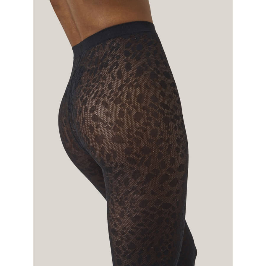 Wolford PANTERA TIGHTS. Strømpebukser med jacquard-mønster. Med et moderne dyreprint og indviklet jacquard-strik fremhæver disse strømpebukser dine ben. De er fremstillet med Wolfords karakteristiske cirkulære strikketeknik, der veksler mellem matte og skinnende teksturer for ekstra effekt.
