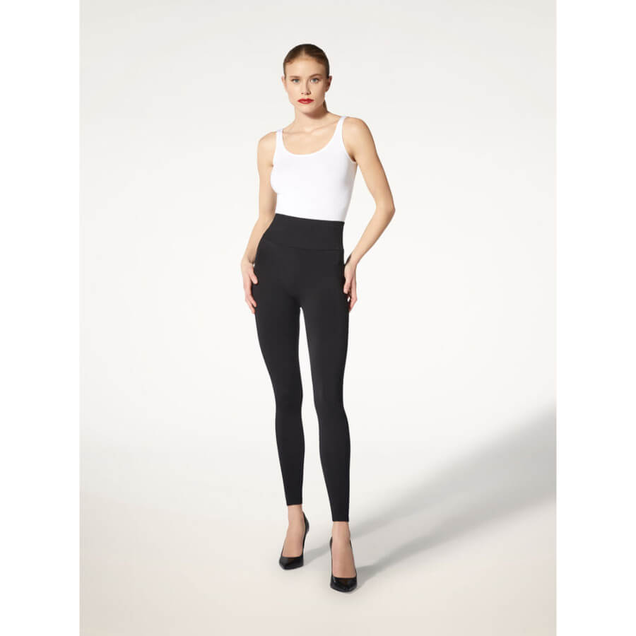 Wolford PUSH UP LEGGINGS. Formende strikleggings. Takket være deres revolutionerende push-up teknologi, løfter og former disse leggings benene. En bag-søm og bred linning fuldender den 3D-formede pasform. Det nye Monogram-logo er placeret på venstre ben.