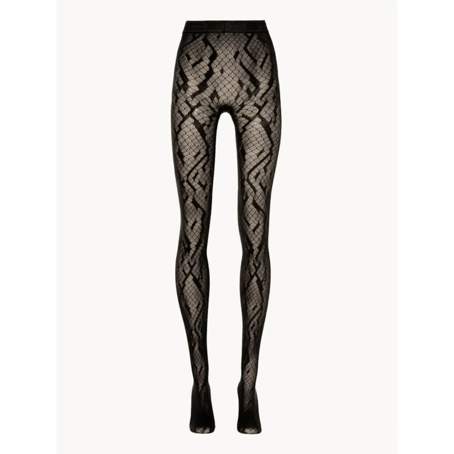 Wolford PYTHON NET TIGHTS. Disse netstrømpebukser er inspireret af den eksotiske python og har et gennemgående slangeskinds-motiv. De sømløse strømpebukser er fremstillet af genanvendt Econyl®-garn og har en mat finish for et sofistikeret udtryk. En elastisk linning med logo sikrer en behagelig og velsiddende pasform.