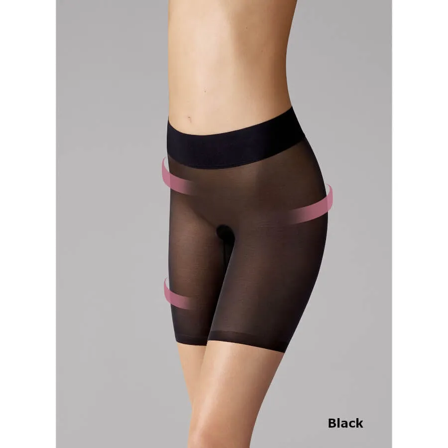 Wolford SHEER TOUCH CONTROL SHORTS. Medium formende, ekstra bred linning. Delikat blød tyl skinner blidt, og effektivt former mave, talje, hofter og lår. Den ekstra brede linning og de flade benkanter giver komfort overalt, uden at skære ind.