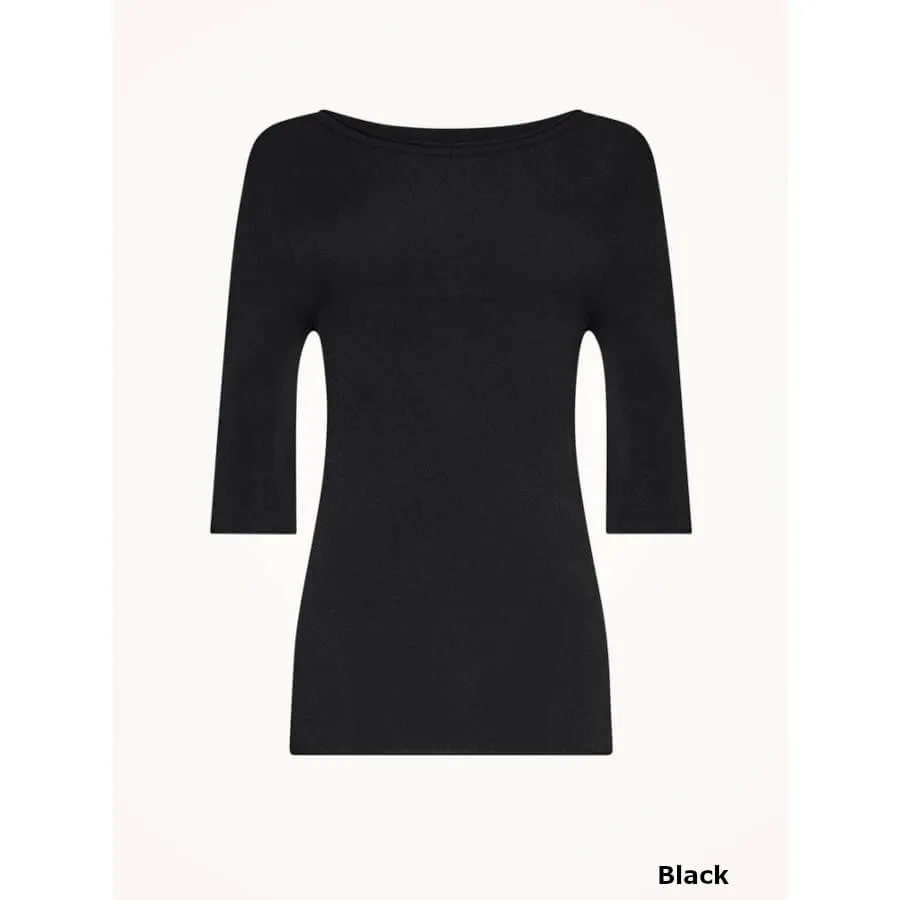 Wolford VISCOSE KNIT TOP SHORT SLEEVES. Skræddersyet bluse med korte ærmer. Den lige halsudskæring og den flotte pasform giver mulighed for en række forskellige stylingmuligheder. Blødt, let strikmateriale.