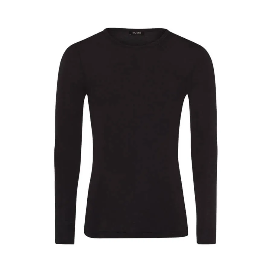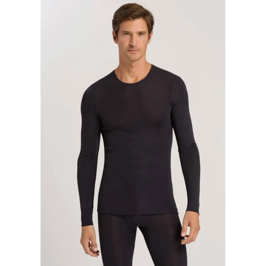 Den ultimative vinter-bluse – HANRO Woolen Silk langærmet bluse er fremstillet i en blanding af luksuriøs merinould og silke. Som en del af HANRO Woolen Silk-kollektionen er denne funktionelle herre-bluse designet til at fungere som termoundertøj, men kan også bæres alene. Flade kanter omkring den rundede hals, sømløse sidesømme og længere længde sikrer en glat silhuet og behagelig pasform.