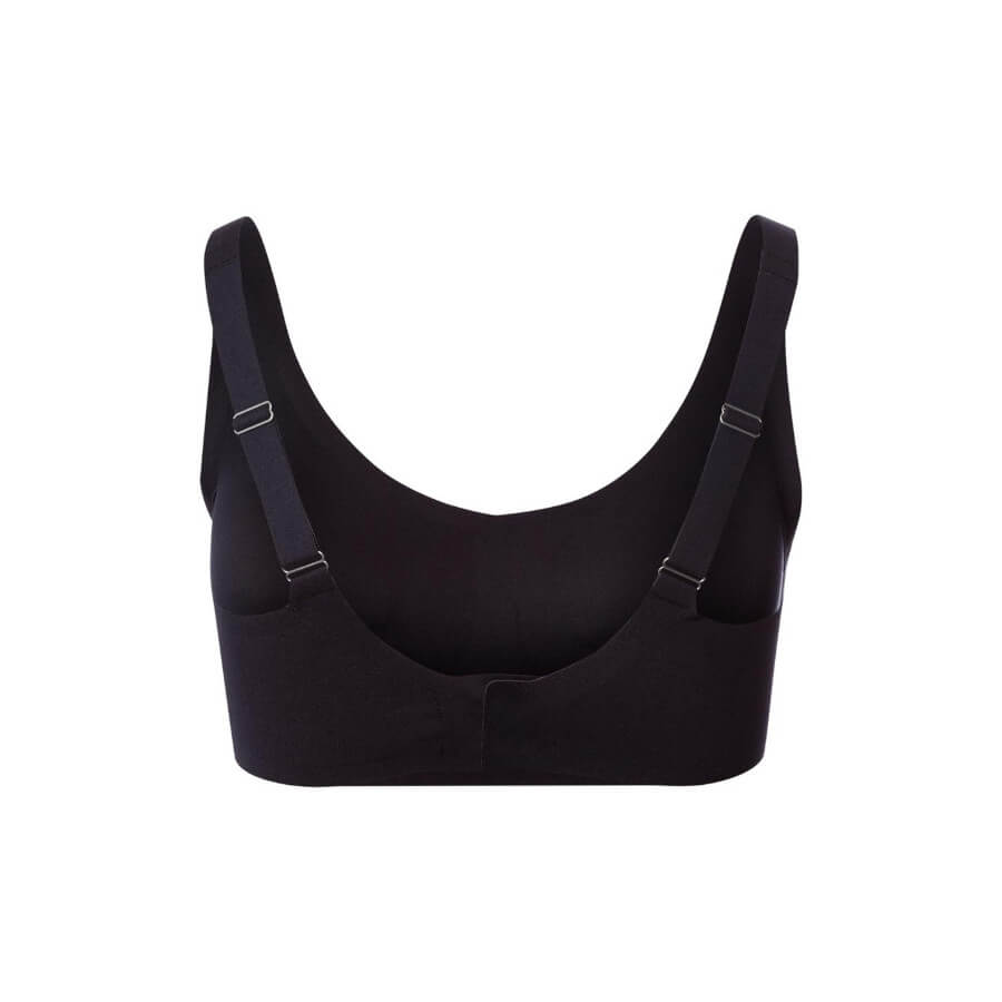 Endelig er den her: den superkomfortable soft cup-bh i crop top-stil – helt uden generende sømme. Skårne og limede kanter giver en utrolig fri fornemmelse. I modsætning til de klassiske over-the-head modeller sikrer denne bh en langt bedre pasform, da både stropper og lukning bagpå kan justeres individuelt. De formstøbte skåle giver ekstra frihed: det todelte brystparti kan bæres med eller uden indlæg – alt efter, hvad du foretrækker.